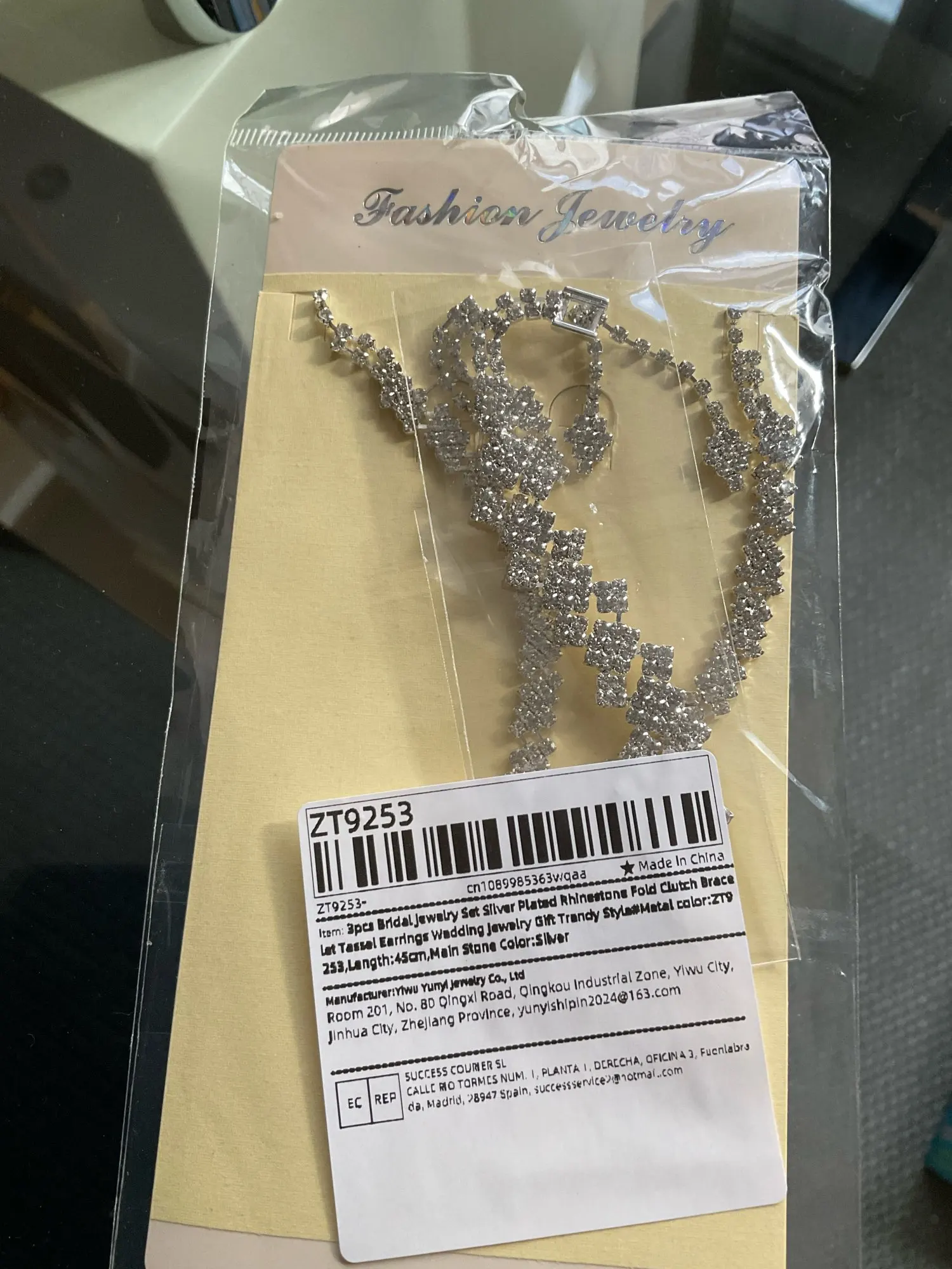 Buy 3pcs Bridal Jewelry Set Silver Plated Rhinestone Fold Clutch Bracelet.
