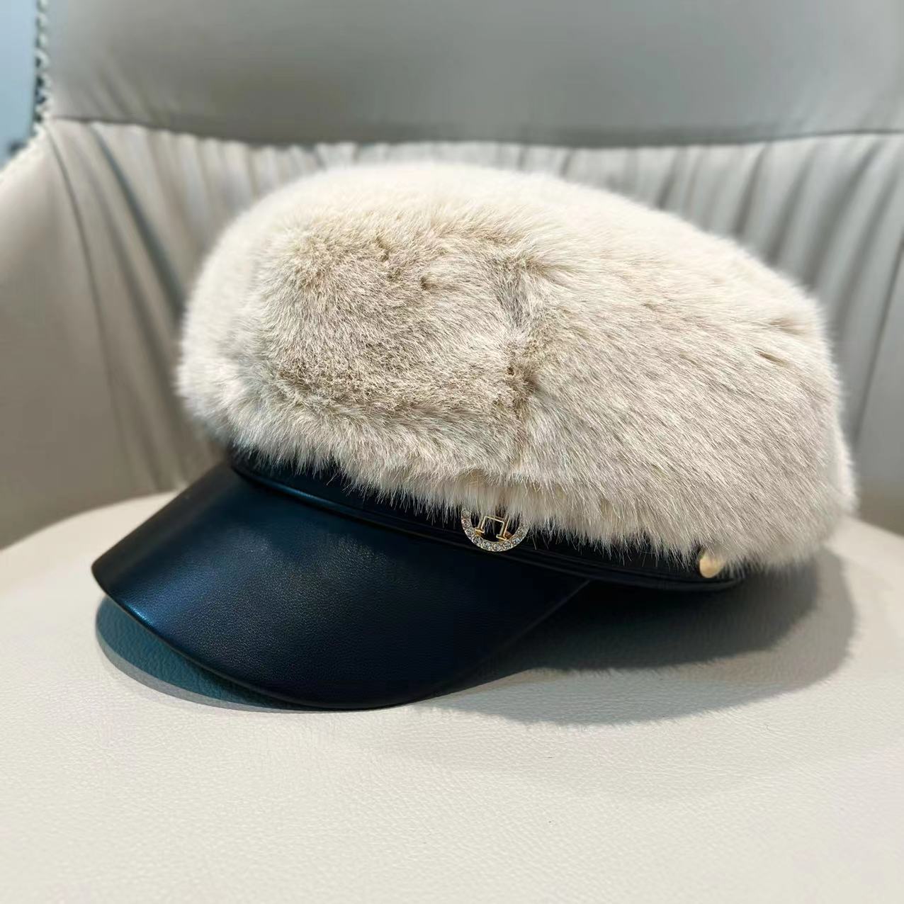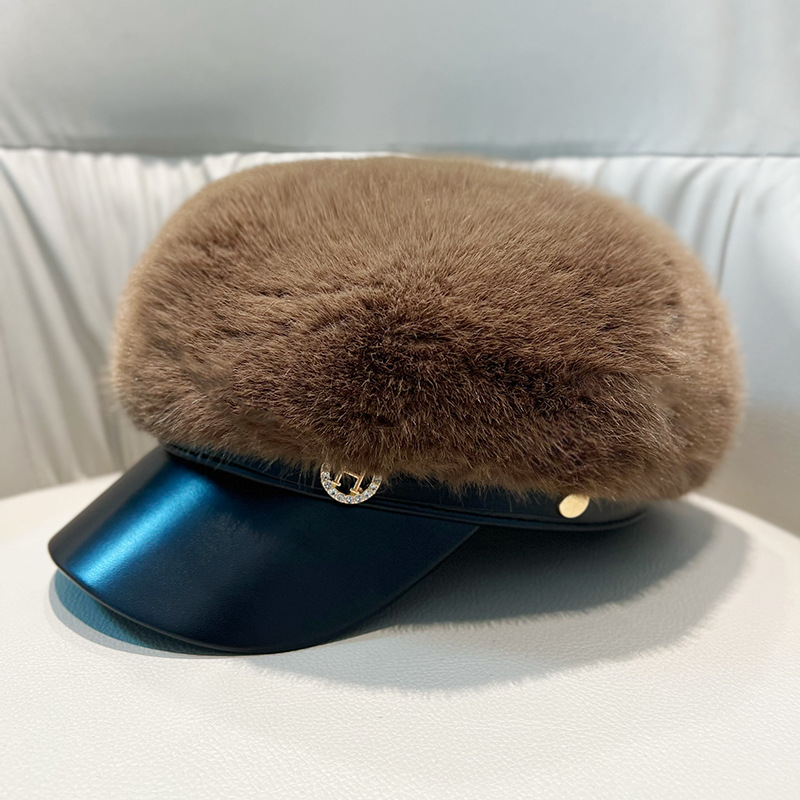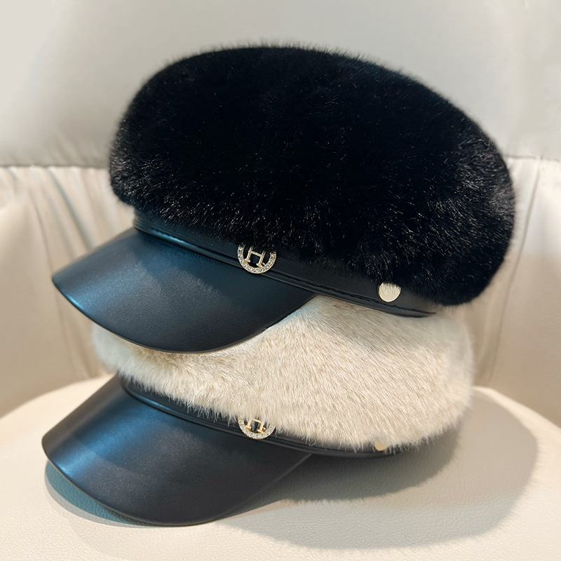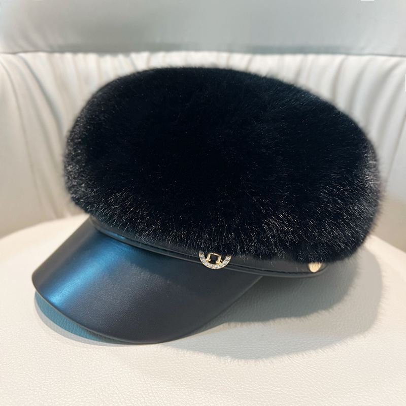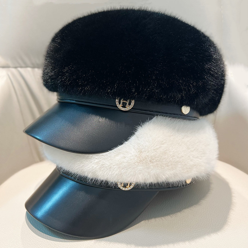 Vintage Mink Fur Beret Women Luxury Versatile Artist Hat.